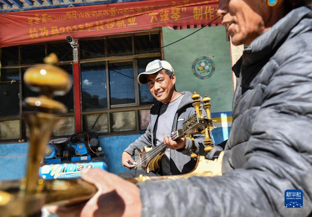 合作社的工匠在調試新制作的扎念琴(1月19日攝)。新華社記者 晉美多吉 攝