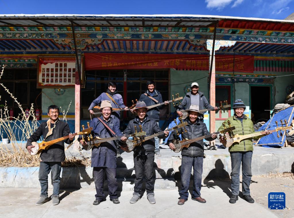 合作社的工匠手拿自己制作的扎念琴合影(1月19日攝)。新華社記者 晉美多吉 攝