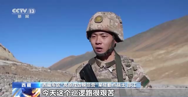 西藏軍區“高原戍邊模范營”某駐勤點戰士 邵江:今天這個巡邏很艱苦,很多地方是我沒有想象到的,比如陡峭的巖壁、冰川,到處存在未知的危險,但是能巡邏在祖國的邊防線上,此刻我的內心是無比驕傲和自豪的,我會跟著老班長的步伐守好祖國的每一寸土地。