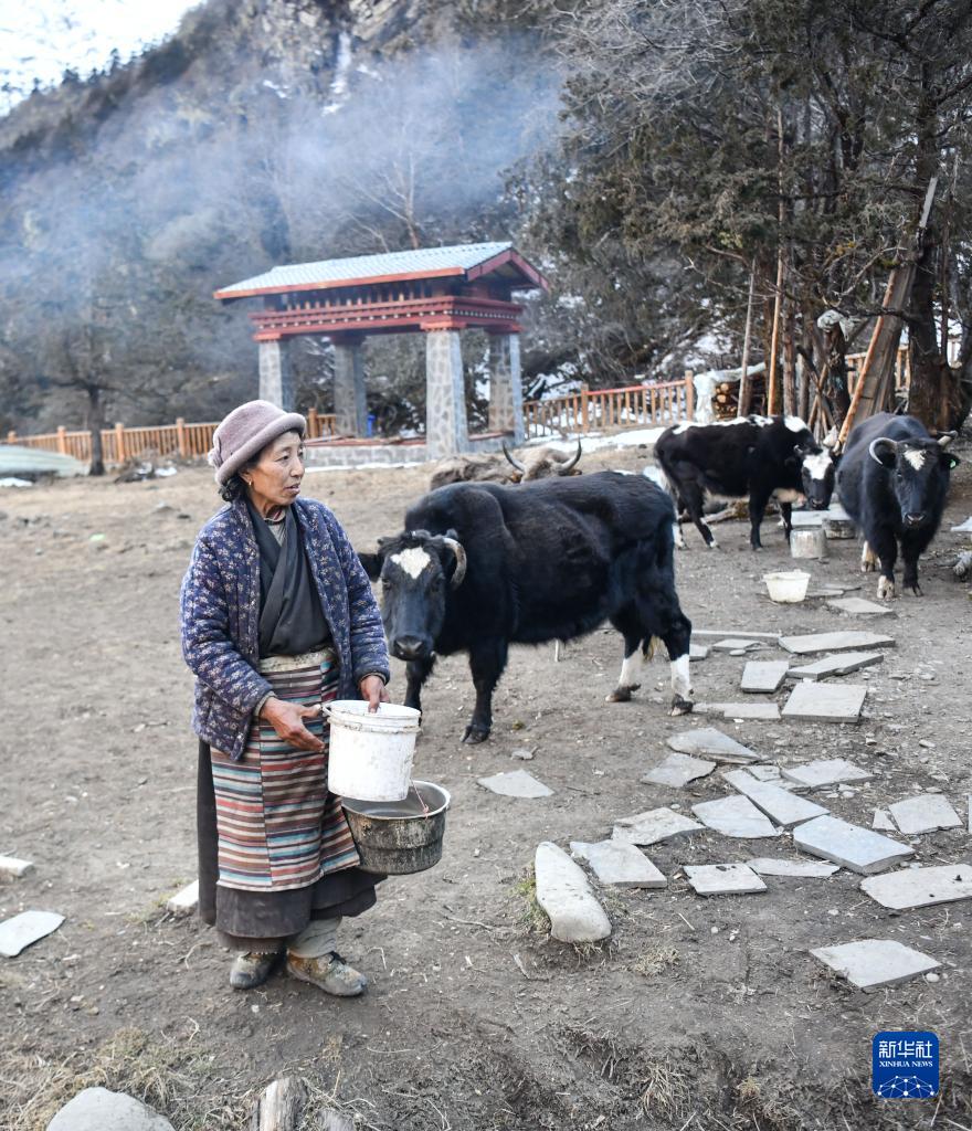 卓嘎準備喂牛(2023年1月8日攝)。新華社記者 晉美多吉 攝