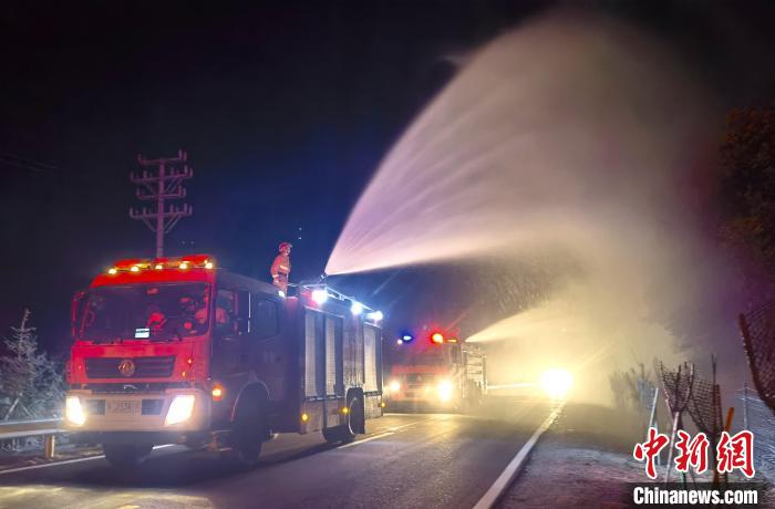 圖為森林消防員正在進行灑水增濕作業。 林芝市森林消防供圖