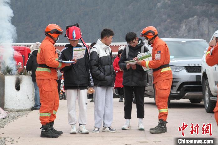 圖為森林消防員在景區重點區域普及防火知識。 林芝市森林消防供圖