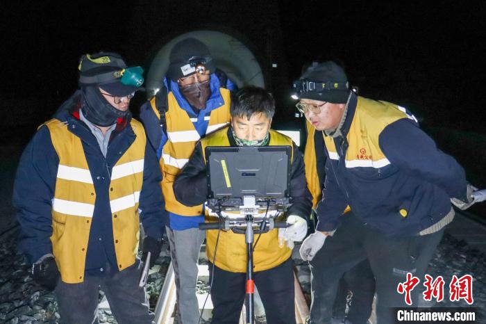 圖為2月9日晚,西藏拉林鐵路設備檢查作業現場。 馬生明 攝