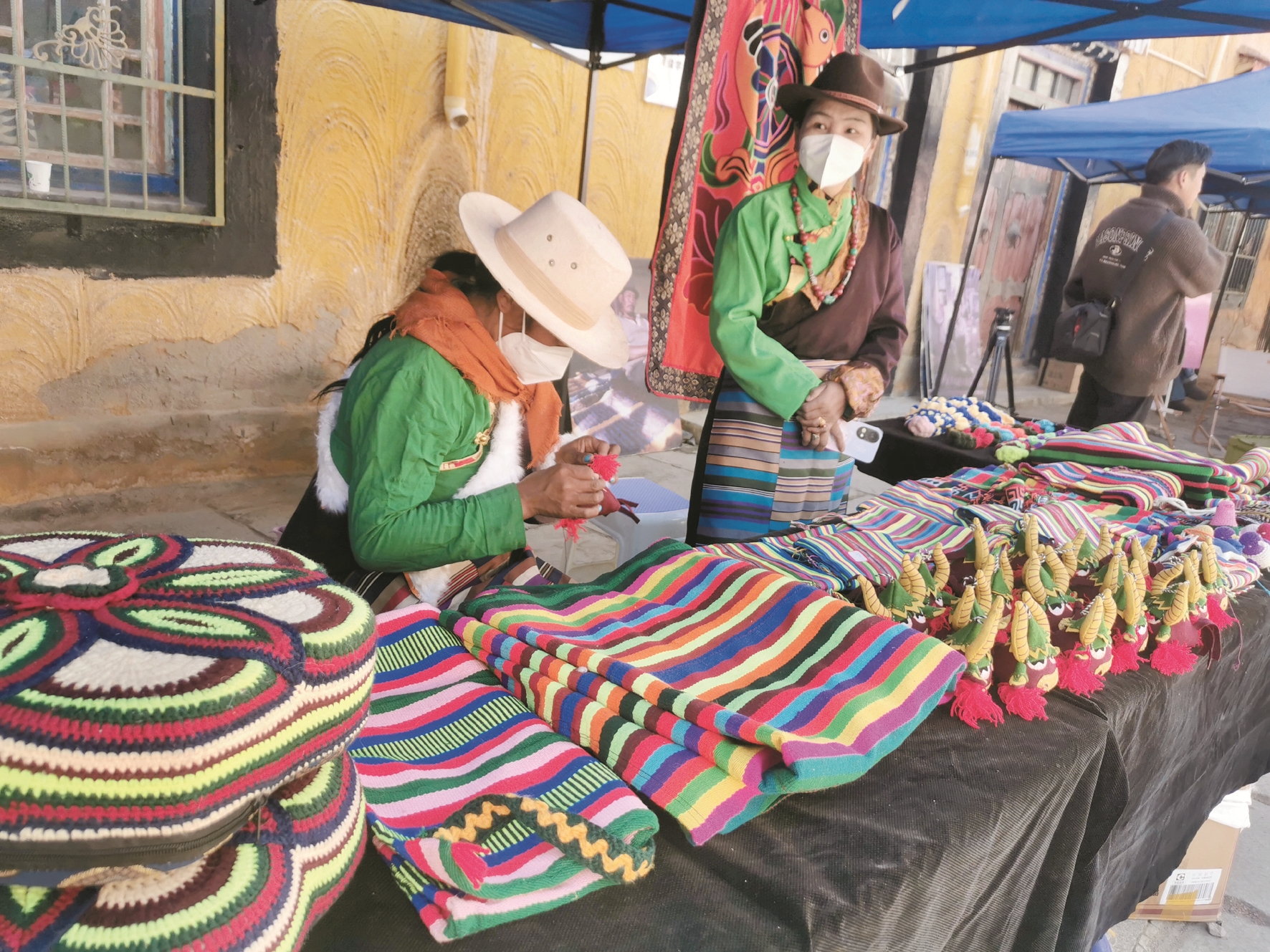 圖為手工藝人在自己攤位前制作手工藝品。拉薩融媒記者 滿文妍攝