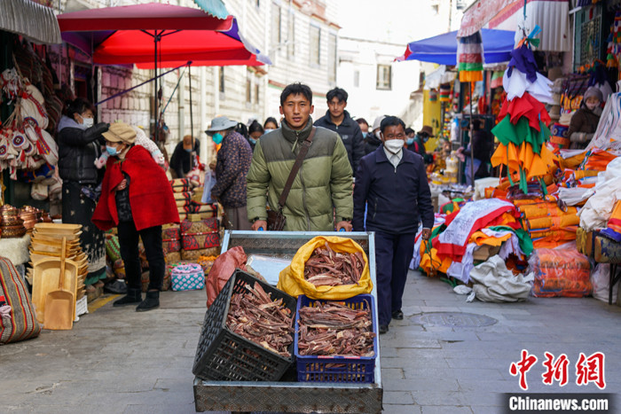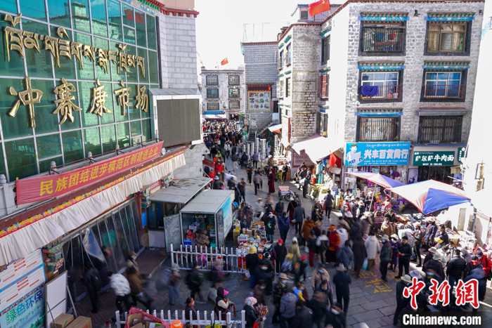 圖為2月13日,拉薩老城區沖賽康市場人流如織。中新社記者 江飛波 攝