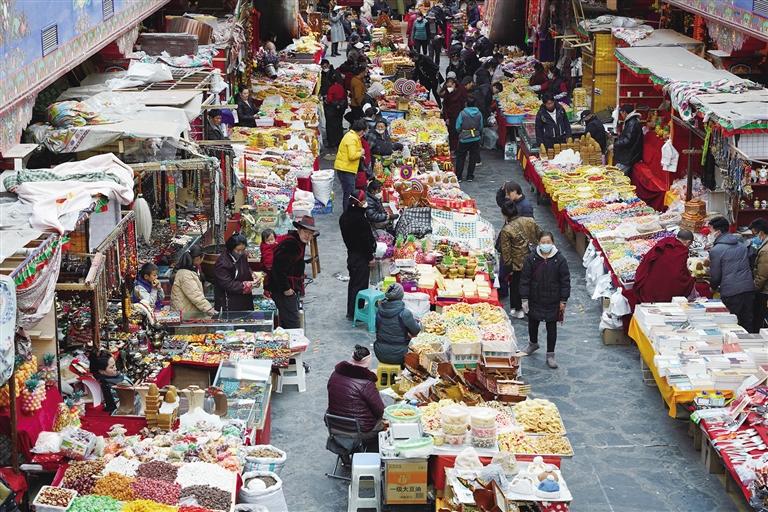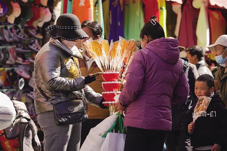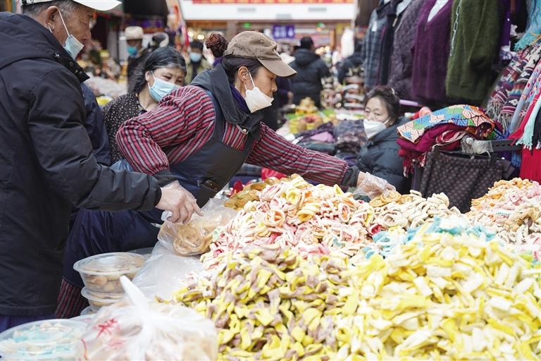 “市場現有1200多家商戶,經營商品有零食、蔬菜、肉類、干雜、五金、服裝等。藏歷新年臨近,每天前來置辦年貨的市民絡繹不絕,日均人流量超1萬。為保證藏歷新年期間年貨充足,市場商戶們提前籌備、積極備貨,目前,各類商品庫存充足、品種豐富,基本上能夠滿足不同消費者的需求。”沖賽康商貿有限公司負責人尼瑪告訴記者。此外,沖賽康市場將于2月19日至27日暫停營業,28日起正常營業。