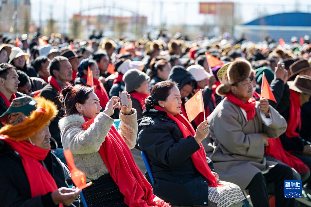 2月19日,人們在西藏拉薩市堆龍德慶區濱河體育公園觀看文藝演出。新華社記者 孫非 攝