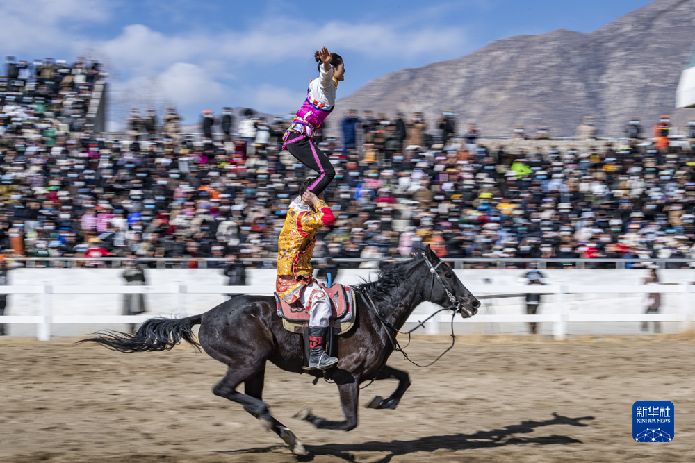 2月23日,在拉薩賽馬場舉辦馬術表演已成為當地慶祝新年的傳統,深受廣大群眾喜愛。騎手們英姿颯爽,為觀眾們帶來騎馬拾哈達、騎馬射箭等精彩表演。