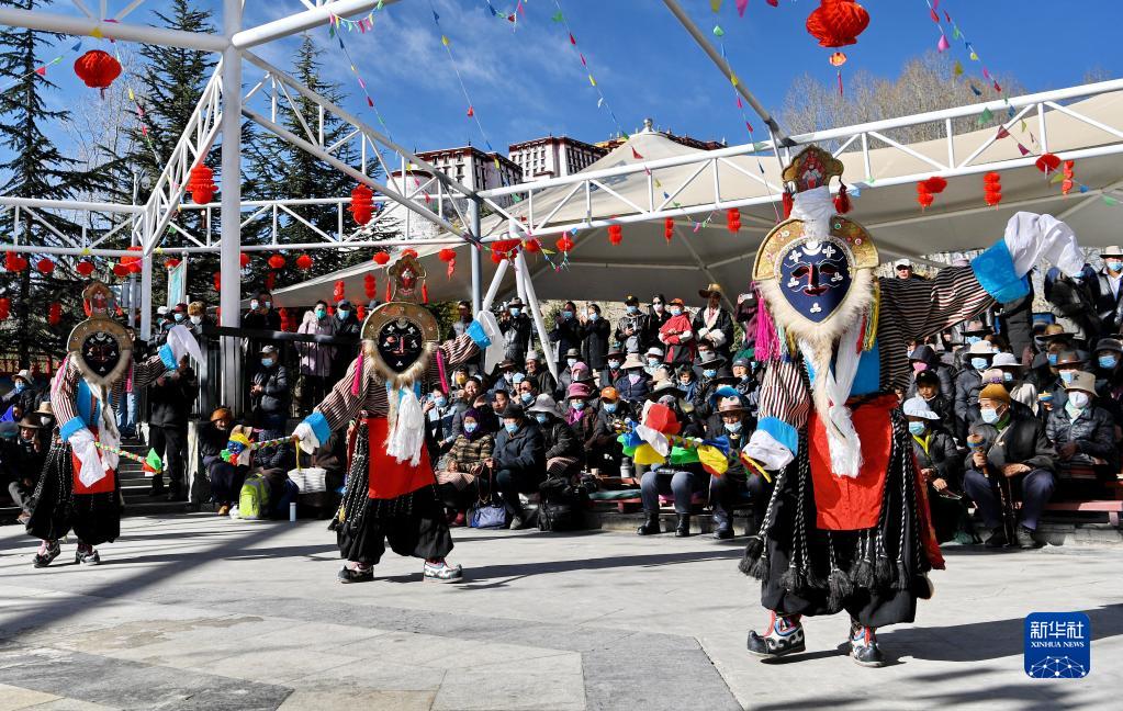 2月25日,演員在拉薩市宗角祿康文化廣場表演藏戲《卓娃桑姆》。新華社記者 張汝鋒 攝