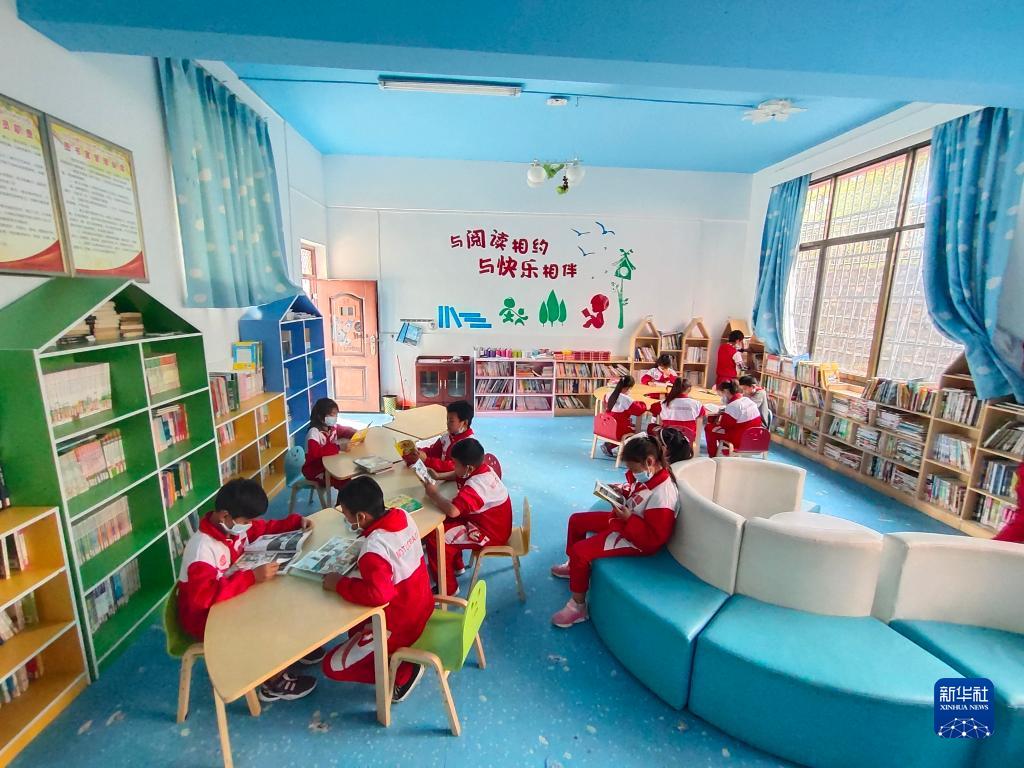 墨脫縣背崩鄉小學的學生在閱覽室讀書。(白瑪措姆 攝)