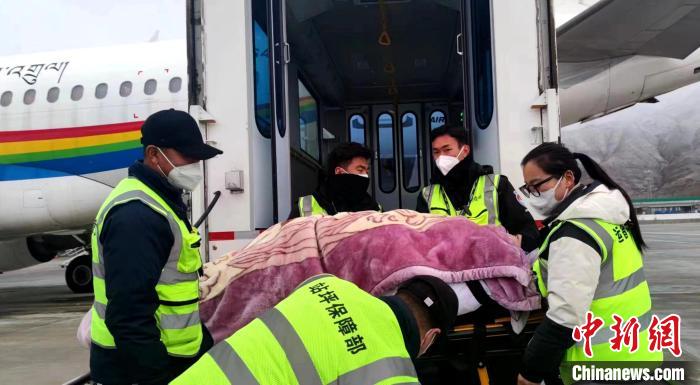圖為拉薩貢嘎國際機場保障部門工作人員為特殊旅客提供服務。民航西藏自治區管理局供圖