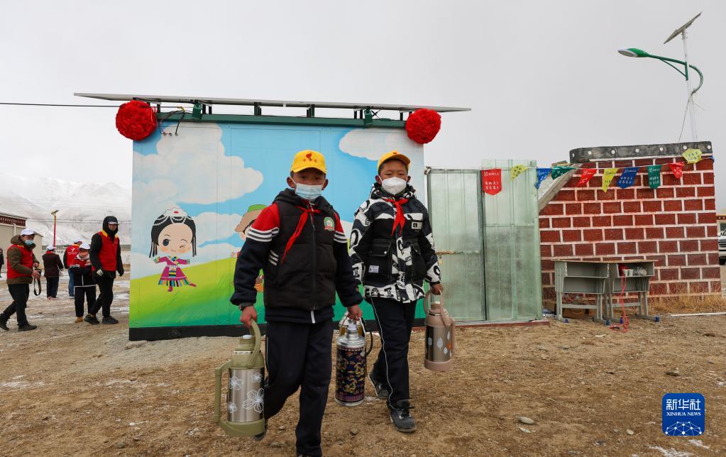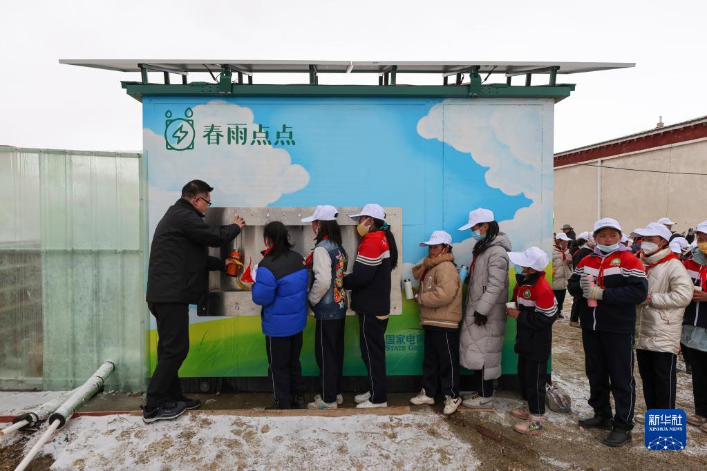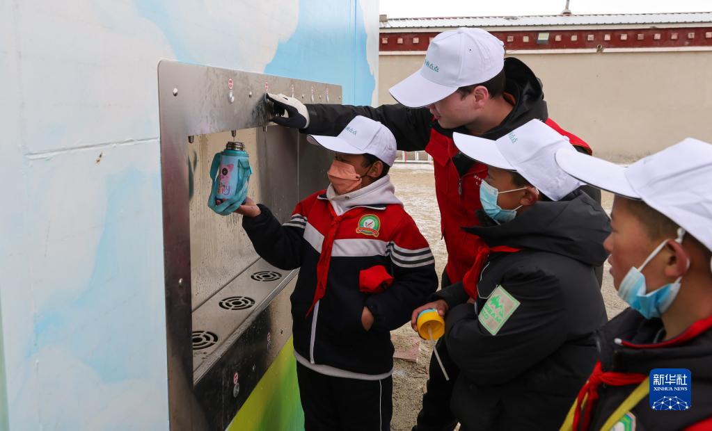 3月21日,那曲市色尼區香茂鄉小學的同學們在新啟用的凈水站打水。新華社記者 姜帆 攝