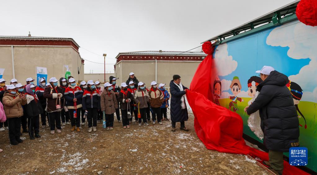 3月21日,西藏慈善總會和捐贈單位的代表為凈水站揭幕。新華社記者 姜帆 攝