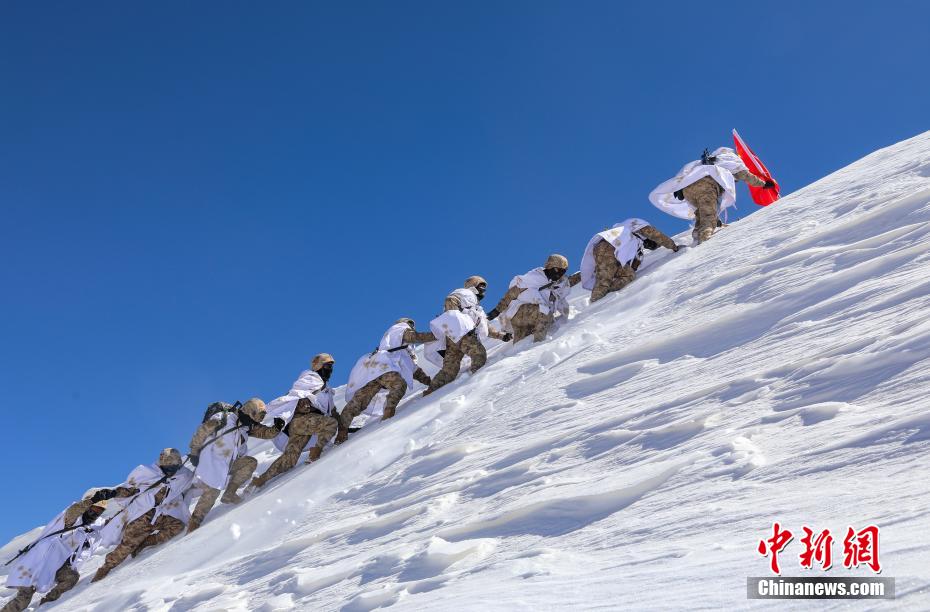 3月21日,阿里軍分區某邊防團巡邏官兵翻越冰雪達坂向點位前行。李海亮 攝