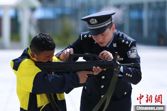 27日下午,60多名學生在老師帶領下走進吉隆邊檢站警營,師生在移民管理警察引導下參觀警營文化長廊、警史館和閱覽室,觀摩警棍、盾牌、槍支等警用裝備,觀看西藏發展變化教育片,聆聽新舊西藏對比相關故事。