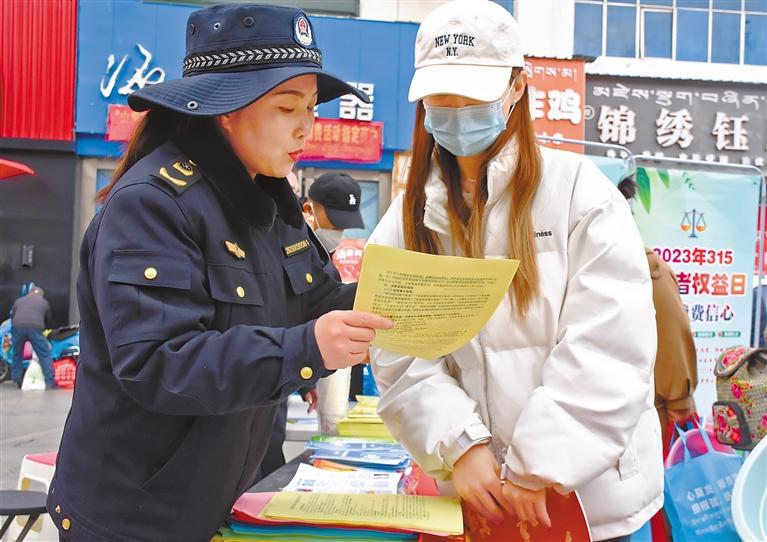 圖為今年“3·15”期間,山南市監局工作人員向市民宣講消費者權益保護知識。劉楓 攝