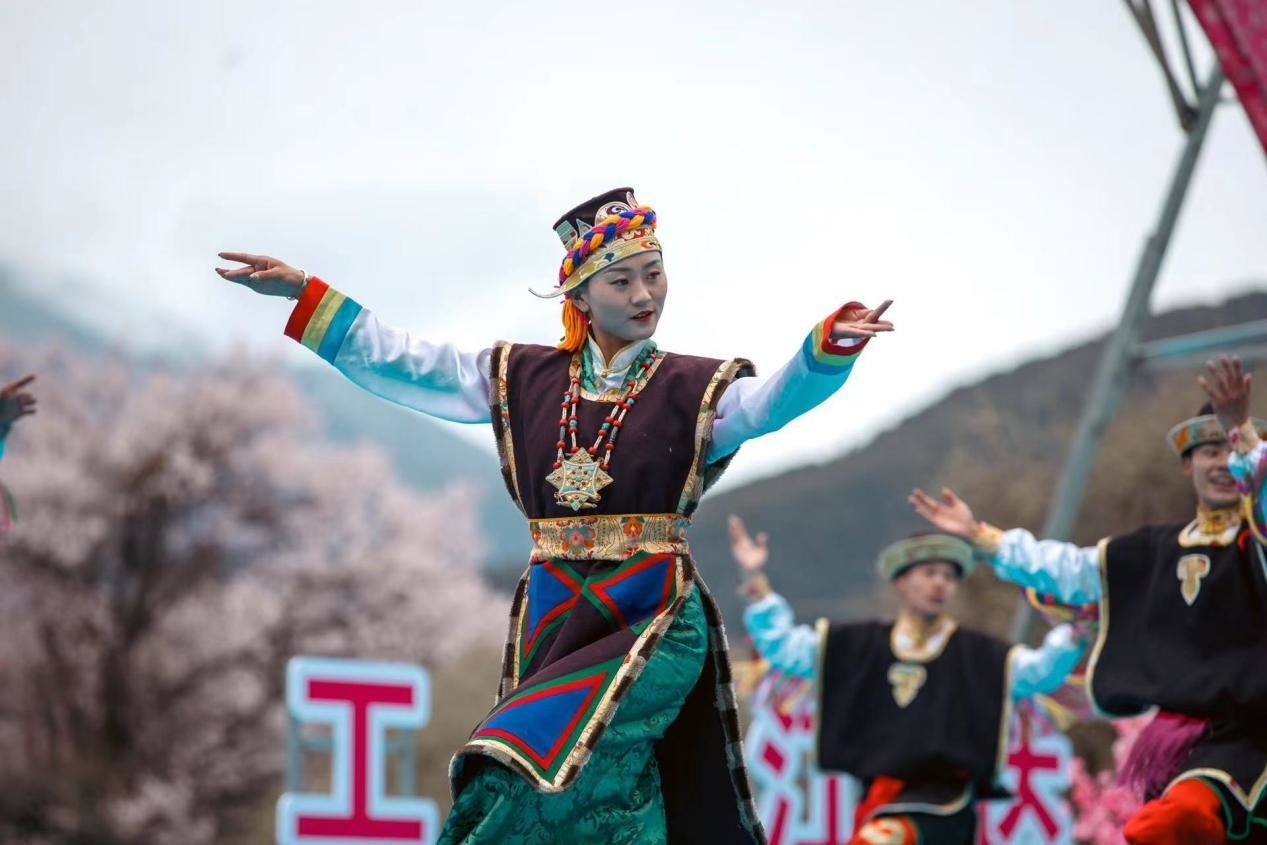 上午10:00開始的的群眾文藝聯歡會,以歡快的《飲酒踏》開場,尼洋河水吟唱春日韻律,米拉雪山涌動喜慶樂曲。