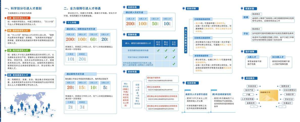 據(jù)悉,近年來,西藏自治區(qū)深入實(shí)施人才“育、引、用、留”四大工程,制定出臺(tái)了《關(guān)于加強(qiáng)和改進(jìn)新時(shí)代西藏人才工作的若干措施(試行)》,科學(xué)劃分引進(jìn)人才類別,將引進(jìn)高層次人才劃分為A、B、C、D四類。在個(gè)人補(bǔ)助、科研補(bǔ)助、薪酬待遇、職務(wù)待遇、職稱評(píng)聘、住房政策、家屬安置、醫(yī)療保障等方面全力保障引進(jìn)人才待遇。同時(shí),千方百計(jì)成就引進(jìn)人才,支持引進(jìn)人才創(chuàng)新創(chuàng)業(yè),激勵(lì)引進(jìn)人才成果轉(zhuǎn)化,實(shí)行配套表彰獎(jiǎng)勵(lì)政策。此外,在簡化優(yōu)化人才引進(jìn)程序、實(shí)施引才伯樂激勵(lì)措施方面均有明確政策。