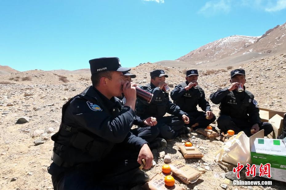 近日,西藏阿里邊境管理支隊扎西崗邊境派出所組織民警和護邊員通過乘車巡邏和徒步巡邏相結合的方式,前往海拔4800米的“守邊固邊第一村”——典角村古格川執勤點巡邏,經過一個小時的車巡和一個小時的徒步巡邏,民警到達了古格川執勤點。通過巡邏,及時掌握了邊境一線情況,確保了邊境轄區安全穩定。圖為移民管理警察巡邏途中休息。郭遠敬 攝