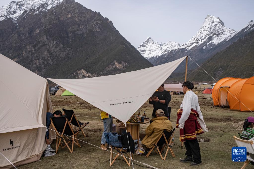 4月15日,游客在巴松錯附近體驗露營生活。新華社記者 黃耀漫 攝