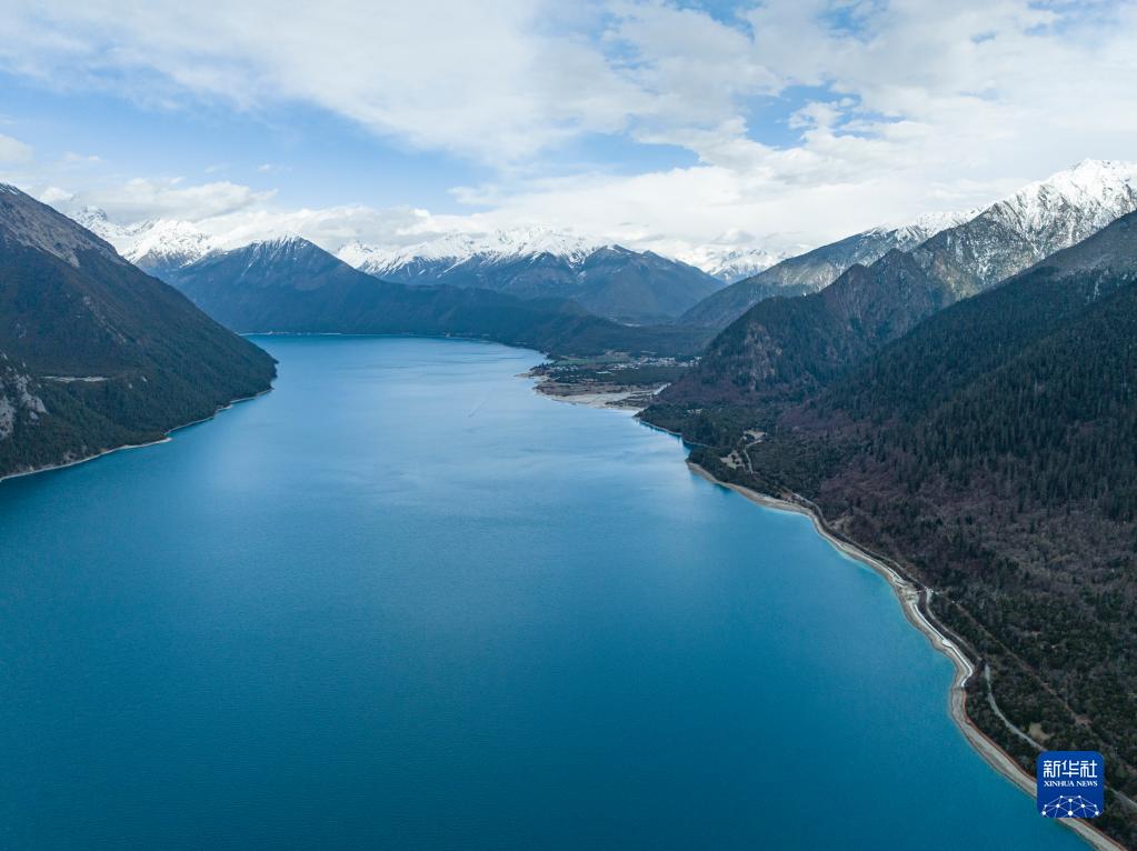 這是4月15日拍攝的巴松錯風(fēng)光(無人機(jī)照片)。新華社記者 孫非 攝