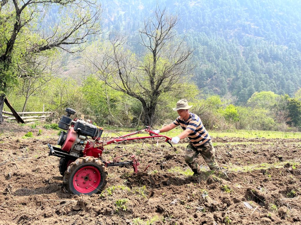 44歲的村民夏多這幾天一刻不得閑,每天一大早,便戴好草帽,穿上膠鞋直奔地里。前些日子剛把水稻田松土澆水完后,緊接著他又一頭扎進玉米地,推著犁地機將田地犁出一道道深深的壟溝。“今年我還要幫其他人耕地,13畝多的地得抓緊收拾好,過幾天就要種玉米了。”