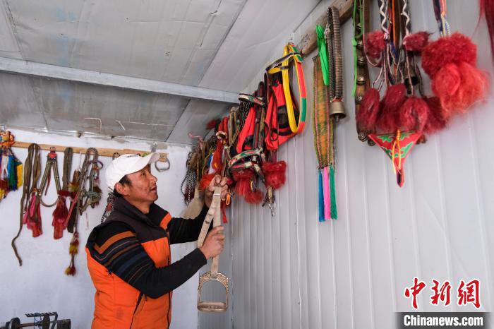 4月26日,強巴整理自己的馬具,他專門有一間房用于堆放馬具。中新社記者 江飛波 攝