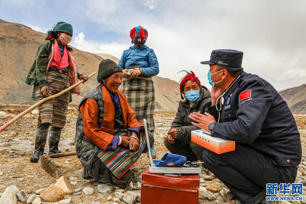 珠峰邊境派出所民警前往轄區為正在農作的群眾義診,并為他們發放藥品。