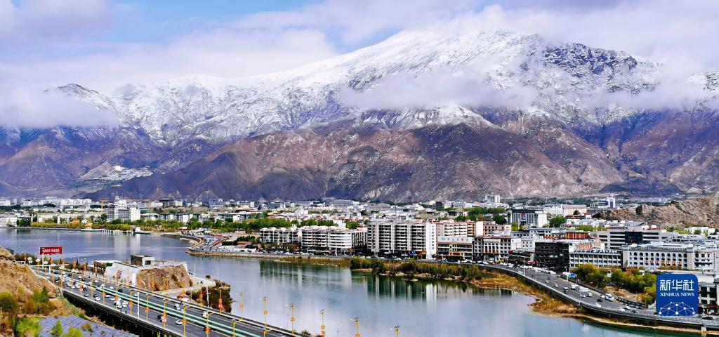 這是在拉魯濕地拍攝的拉薩風(fēng)光,蔥蘢的樹(shù)木點(diǎn)綴在城市中,與山色相映成趣(5月12日攝)。新華社記者 姜帆 攝