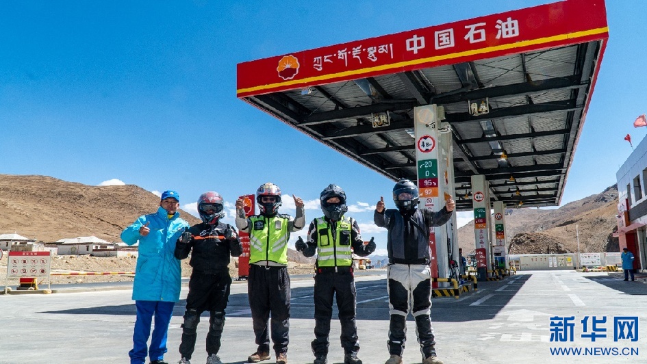 邊巴頓珠正在為游客的摩托車加油(5月16日攝) 。新華網發 洛桑旺堆 攝