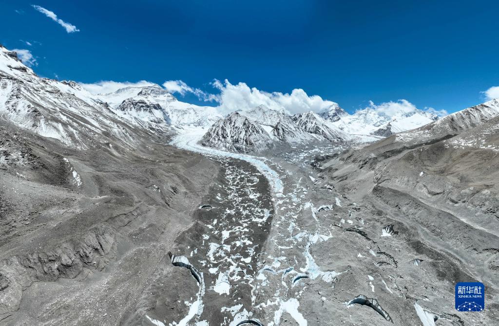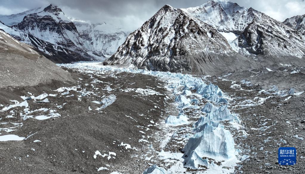 這是珠峰腳下的中絨布冰川(5月15日攝,無人機(jī)照片)。新華社記者 孫非 攝
