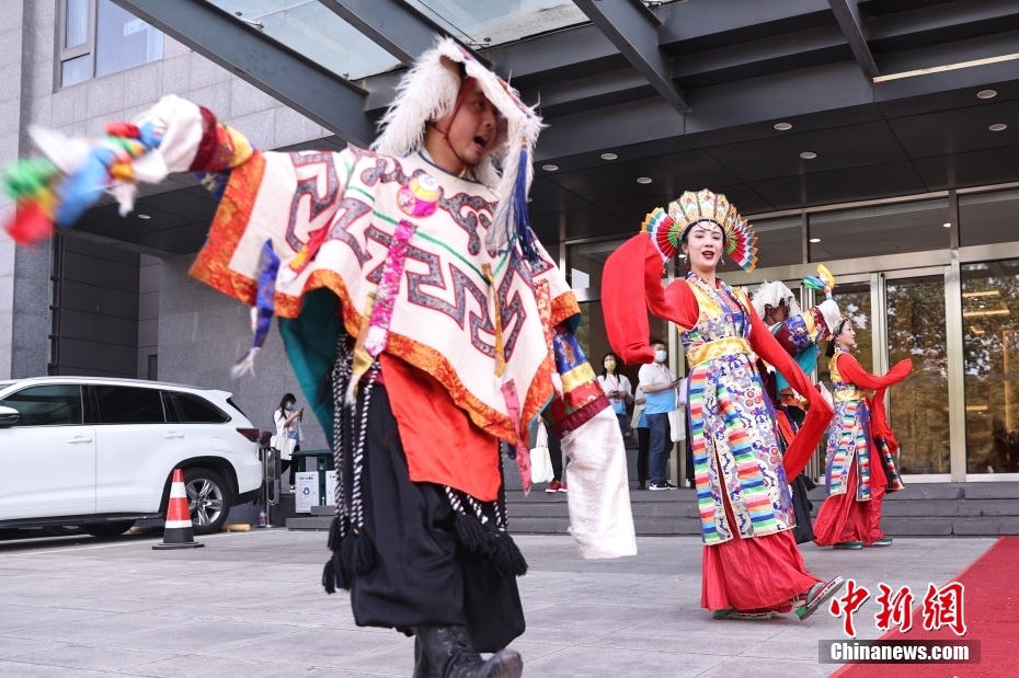 5月23日,“2023·中國西藏發(fā)展論壇”在北京舉行。會場外,活潑獨特的藏式迎賓舞蹈、展示西藏人文自然風貌的圖片,已在論壇開幕前預熱起探討西藏新發(fā)展的氛圍。圖為藏式迎賓。