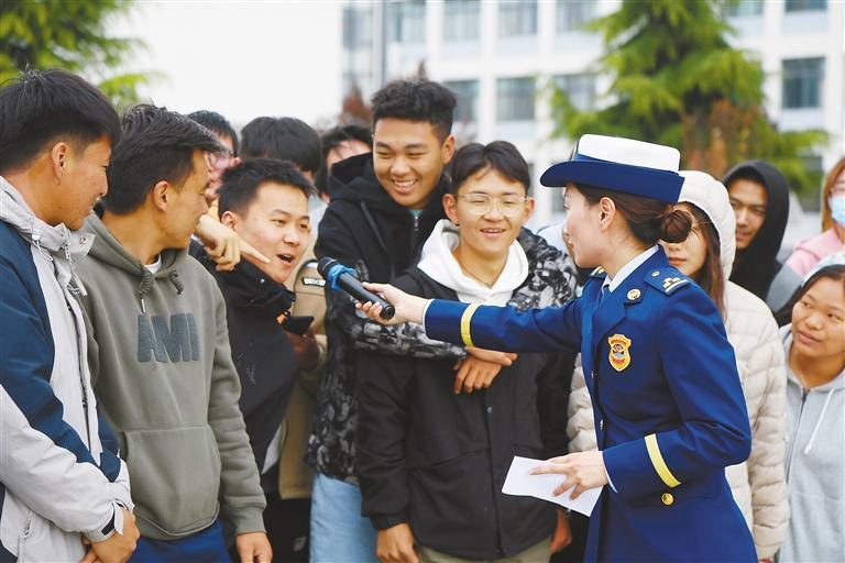 消防宣傳員在西藏大學開展消防安全有獎知識問答。肖暄 攝