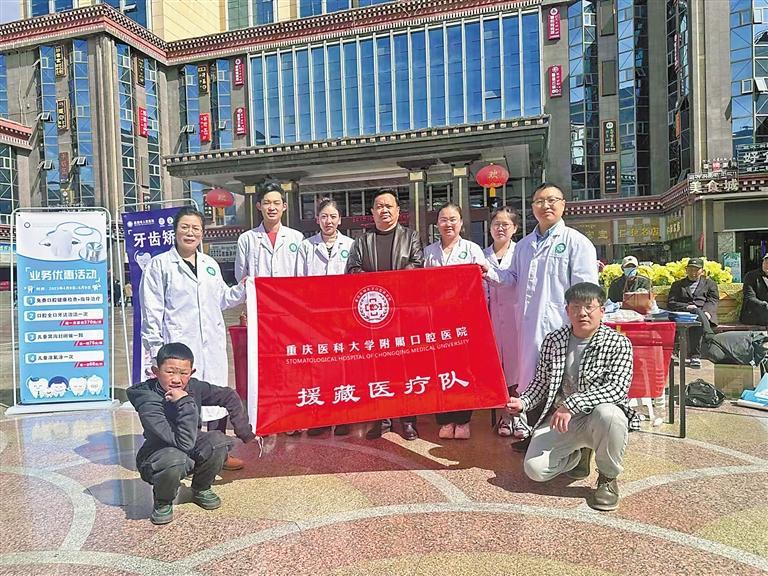 重慶醫(yī)科大學(xué)附屬口腔醫(yī)院援藏醫(yī)療隊部分成員與群眾合影。