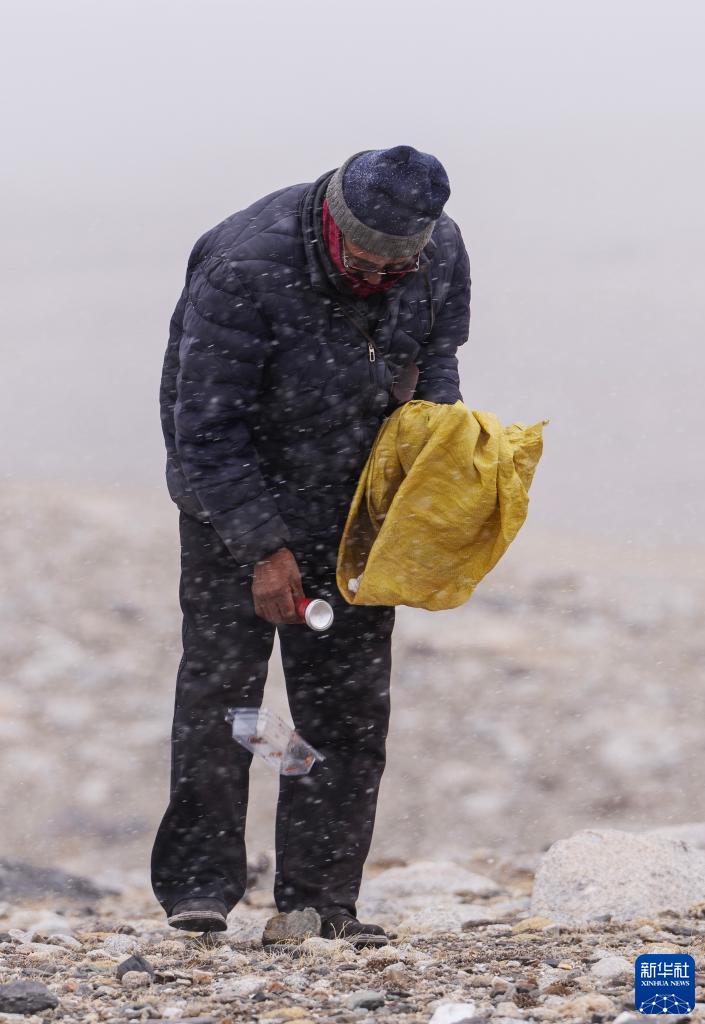乃乃老人靜靜地、遠遠地凝視著杰瑪央宗冰川,像凝視著好久未見的朋友。隨后,老人拎起從家帶來的那個黃色蛇皮袋,開始在山口附近撿拾垃圾。冰川附近雖然人跡罕至,但還是有游客留下的瓶瓶罐罐或者被風吹來的塑料袋、紙片……“這附近有二三十戶牧民,他們都和我一樣愛護環境,”乃乃老人對記者說,“這里是一片凈土,是雅魯藏布江的發源地,對全世界來說都是非常重要的,我能做的就是盡自己努力保護好這里的環境,然后告訴來往的游客要愛護衛生。”