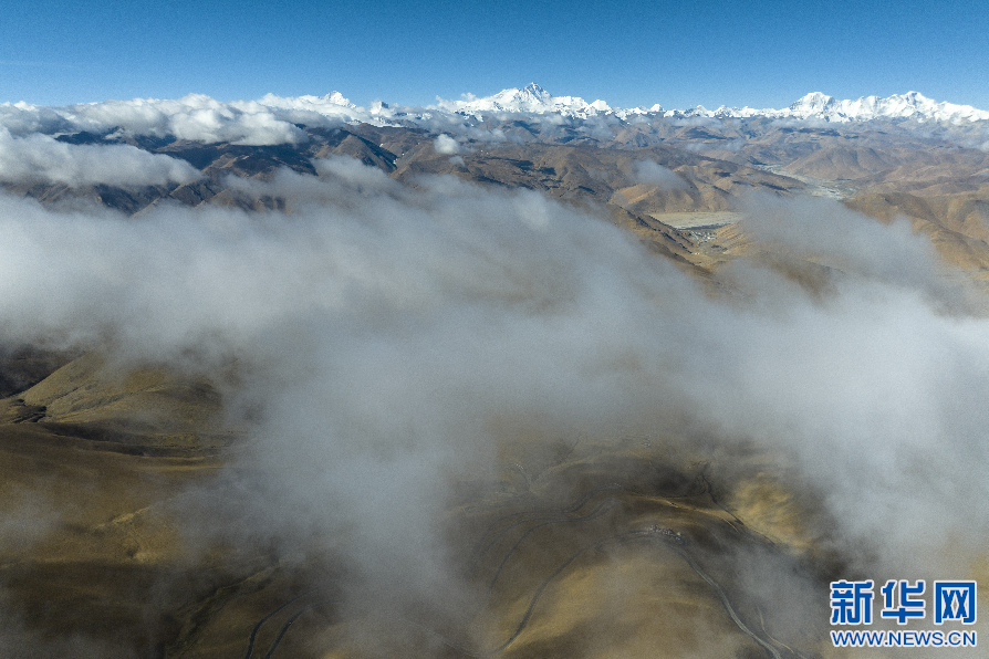 在海拔6000米左右拍攝的喜馬拉雅山脈(無人機照片)。 新華網 旦增努布 攝