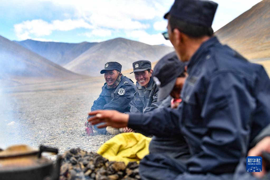 護邊聯防隊隊員在一塊空地上準備午餐(6月2日攝)。新華社記者 晉美多吉 攝