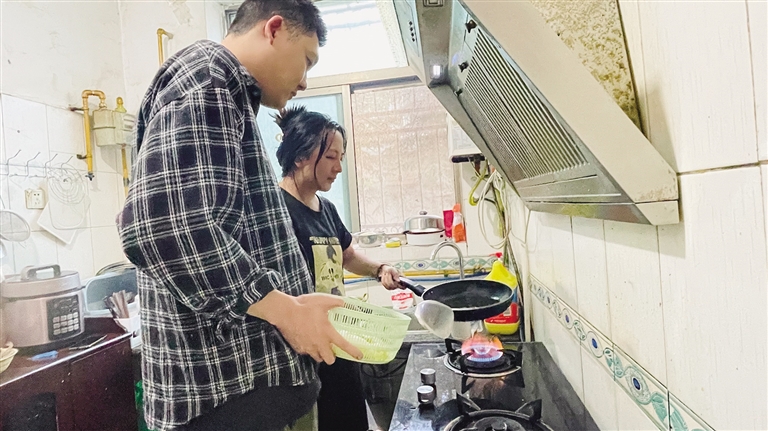 李洲和萬(wàn)娜正在一起做飯。