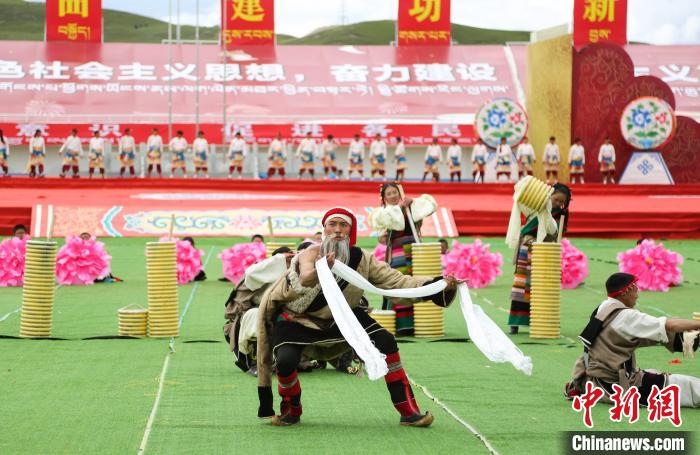 活動中,那曲各縣區代表隊等身著盛裝以方隊形式展現了各自風采。開幕式還進行了馬術表演,并以《草原飛歌》《奮進那曲》《幸福歌聲》《吉祥鍋莊》四個篇章進行了大型文藝節目演出。