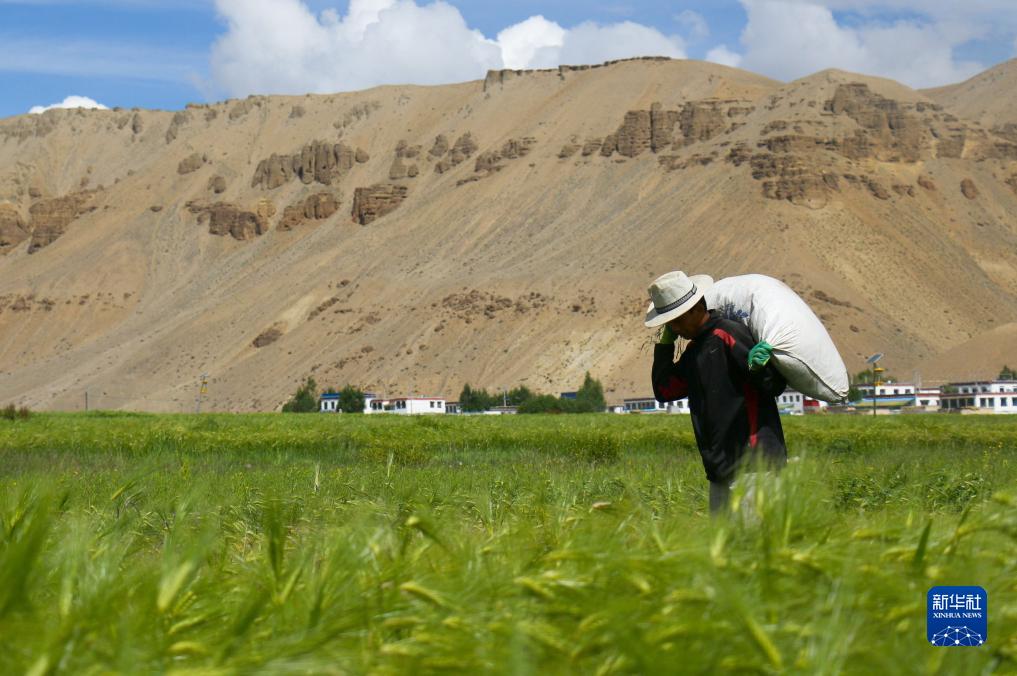 8月12日,西藏阿里地區普蘭縣赤德村村民在青稞田里勞作。新華社記者 聶毅 攝