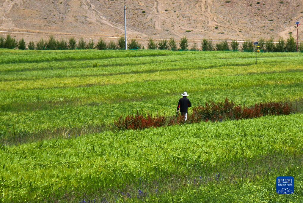 8月12日,西藏阿里地區普蘭縣赤德村村民在一片青稞田里行走。新華社記者 聶毅 攝