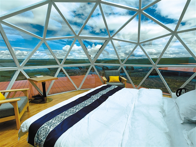 圖為夯錯濕地暗夜星空景區戶外星空房一角。 記者 趙書彬 萬靖 攝