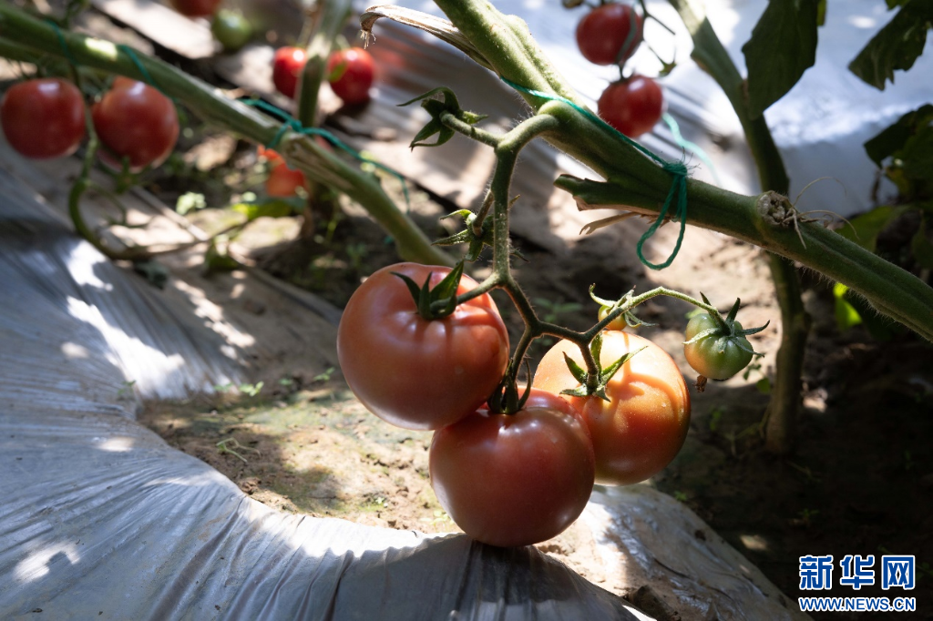 圖為曲水縣才納園區水果采摘區內成熟的番茄(8月20日攝)。 新華網發 李騰 攝