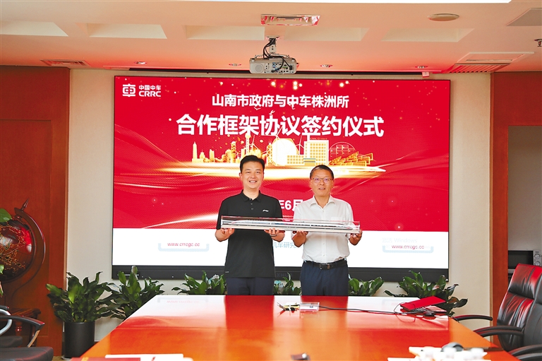 山南市政府與中車株洲所簽署合作框架協議現場。