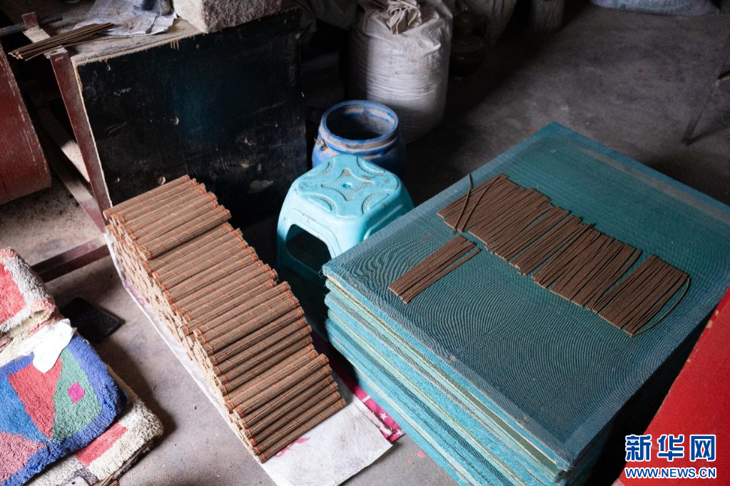 工作時,格桑次仁會盤腿坐于門前,熟練地揉搓著盆中的香泥,待其成型后再迅速放入帶孔的牛角中,用靈巧的手指擠出一道道筆直的線條,一根根均勻的藏香便呈現在人們的眼前。經過晾曬成型之后,這些藏香將會被送至附近的大小寺廟,或是通過電商渠道發往全國各地。