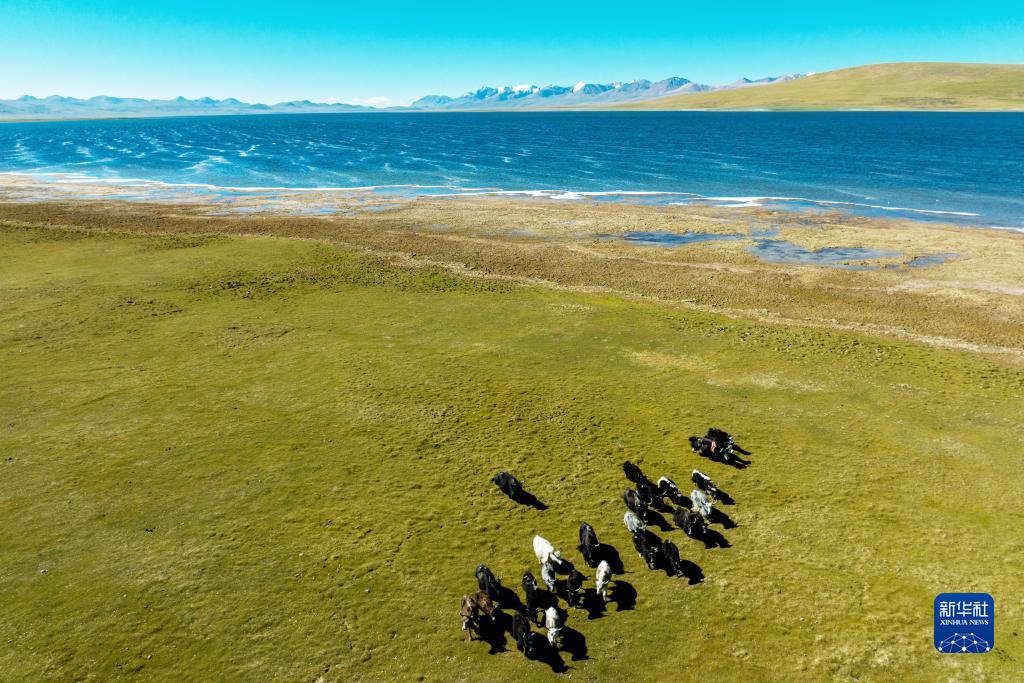 打加錯湖畔的牛群(8月30日攝)。新華社記者 劉文博 攝