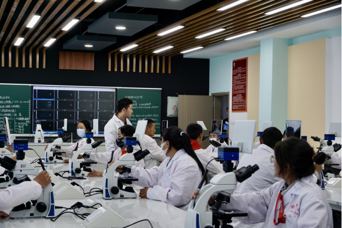 VR實訓室、校園電視臺、專業實驗室、模擬創業實訓基地、綜合實訓樓……在那曲市職業技術學校中,產教相融的現代化基礎設施隨處可見。