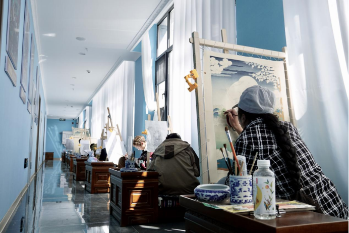 此外,那曲職校還承擔社會短期技能培訓任務,位于市委黨校東側的綜合實訓樓便兼具此功能,內設有中餐烹飪、酒店服務、技能鑒定等實訓功能,同時建設了卡墊、民族手工藝編制、唐卡、陶藝等大師工作室及學習場所。畢業后重回母校在此任教的桑珠,目前在社會服務部擔任學管員一職,主要負責未就業大學生的職前培訓管理。“現在面向社會招收了200多名學員,”桑珠介紹道,“我通常會在晚課讓他們通過游戲的形式來了解物流管理的相關技能知識。”