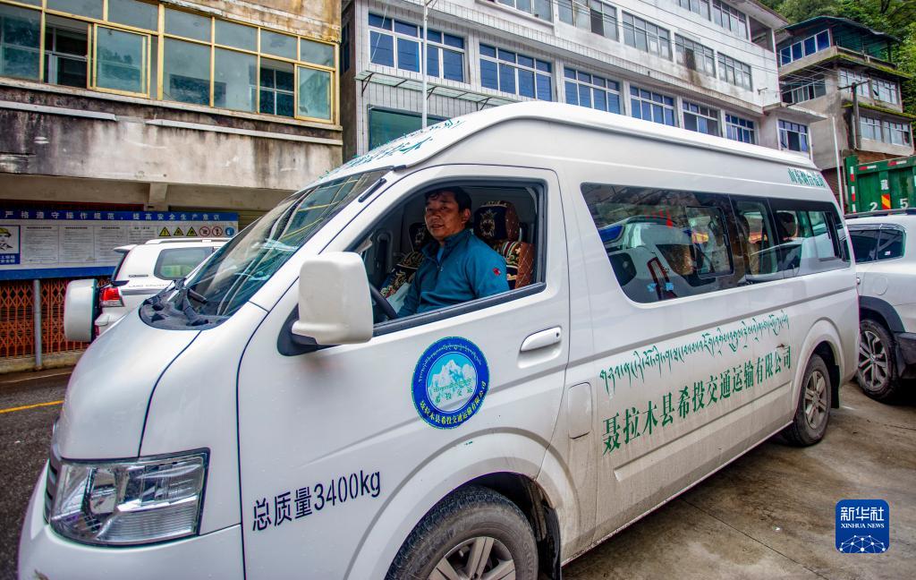 駕駛員旦增尼瑪運營的旅游車負(fù)責(zé)接送中國游客往返樟木口岸與聶拉木縣城(9月9日攝)。樟木口岸恢復(fù)客運功能后,他每天都要在這條線路上跑4、5個來回。新華社記者 姜帆 攝