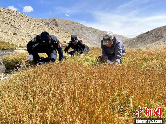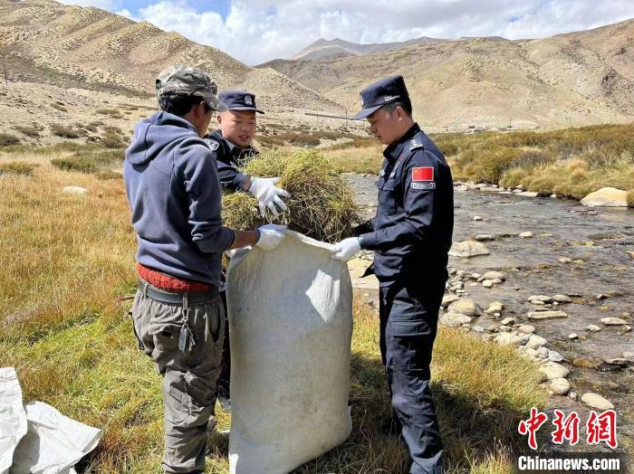 20日,在西藏阿里地區札達縣曲松鄉草場上,一眼望去處處是忙碌的身影,曲松邊境派出所移民管理警察和轄區民眾齊心協力,為儲存牲畜越冬度春飼草料辛勤勞作。
